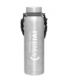 32 oz double wall 18/8 stainless steel thermal bottle with copper vacuum insulation, insulated stainless steel threaded lid, silicone ring, removable strap with buckles, removable clasps, and powder coated finish. Individual gift box. Hand wash recommended. Do not microwave. Complies with FDA, Prop 65. 11" H x 3.1875" W